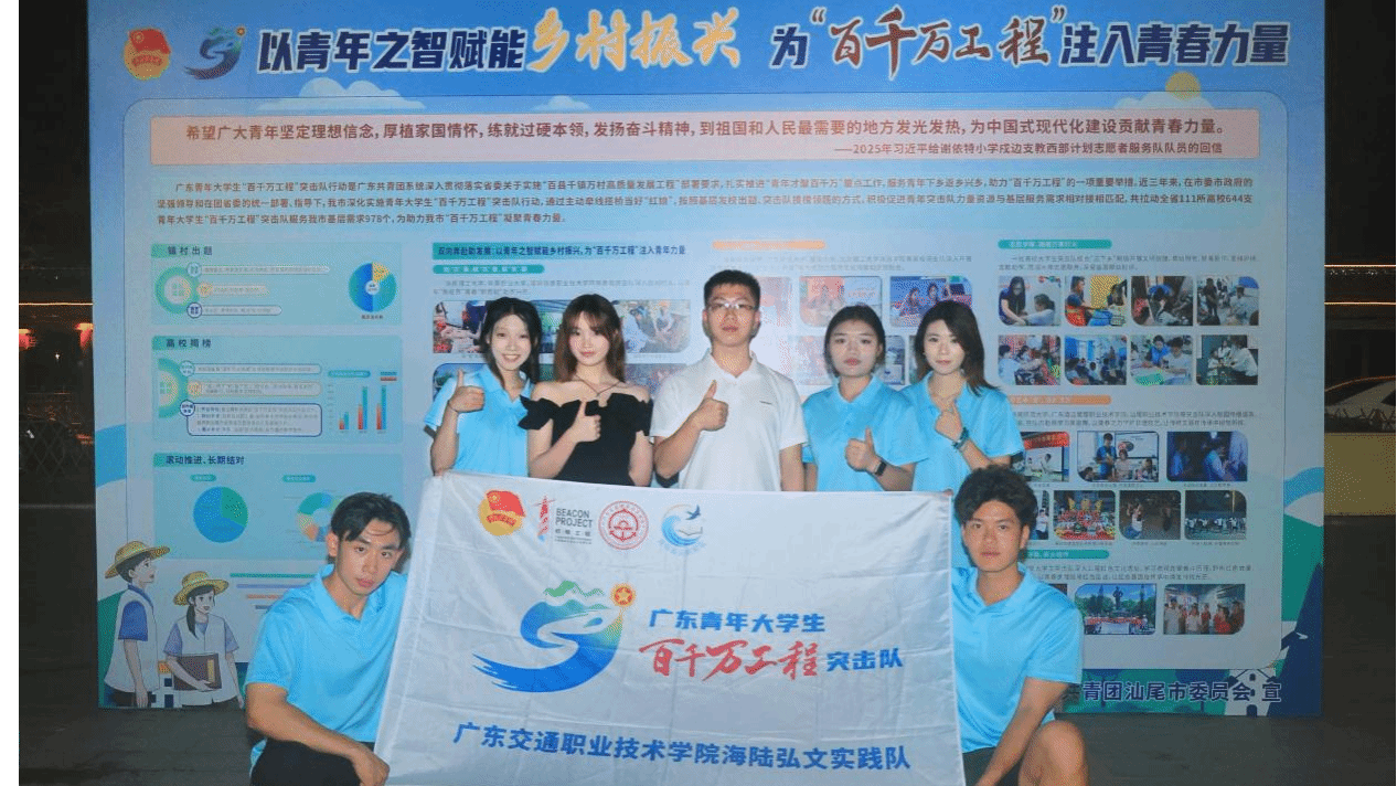 广交院学子在此次活动中的精彩表现,不仅是对汕尾市青年大学生 “百千万工程”突击队暑期集中服务工作的有力响应,更是青年大学生用青春力量赋能基层的生动实践。相信在接下来的暑期服务中,越来越多的“百千万工程” 突击队将坚守初心使命,带着饱满的热忱与务实的行动扎根基层,用青春的智慧与汗水为基层发展添砖加瓦。
