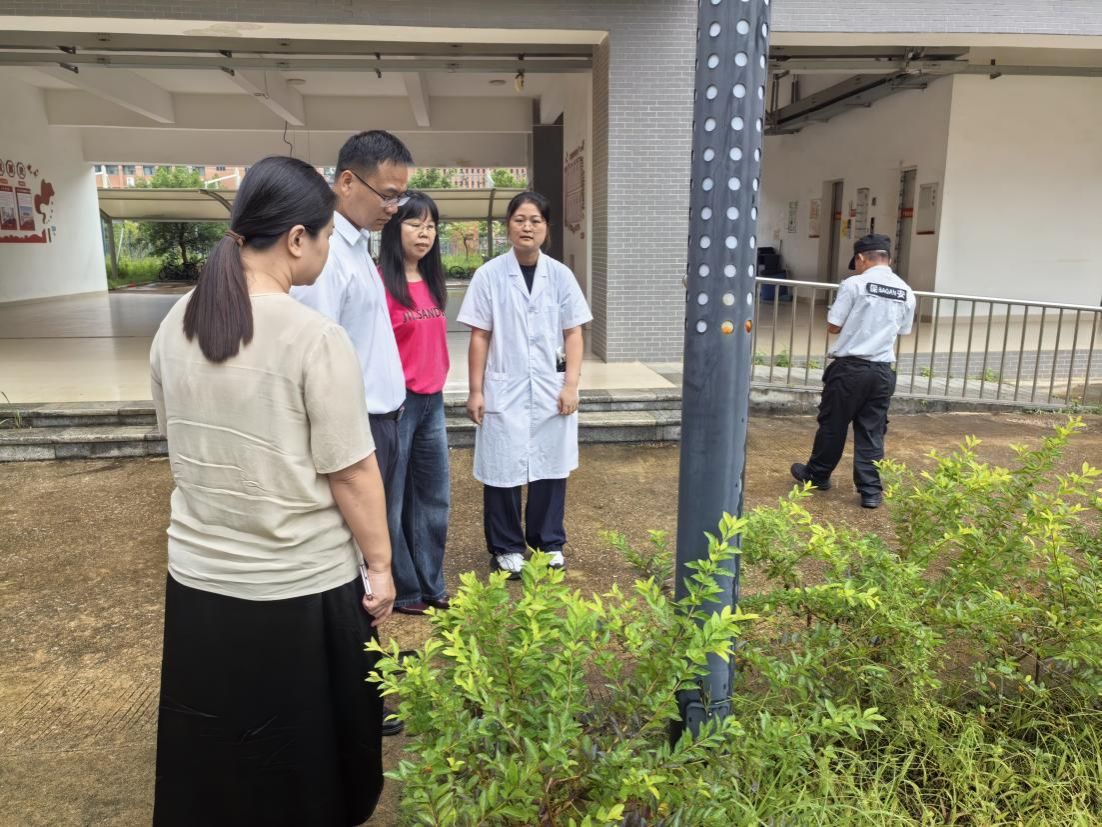 为切实保障师生健康安全,确保秋季学期平稳有序,8月18日下午,清远市教育局副局长伏开放带队专项检查组一行深入我院清远校区,就基孔肯雅热等重点蚊媒传染病防控工作进行了现场督导检查。