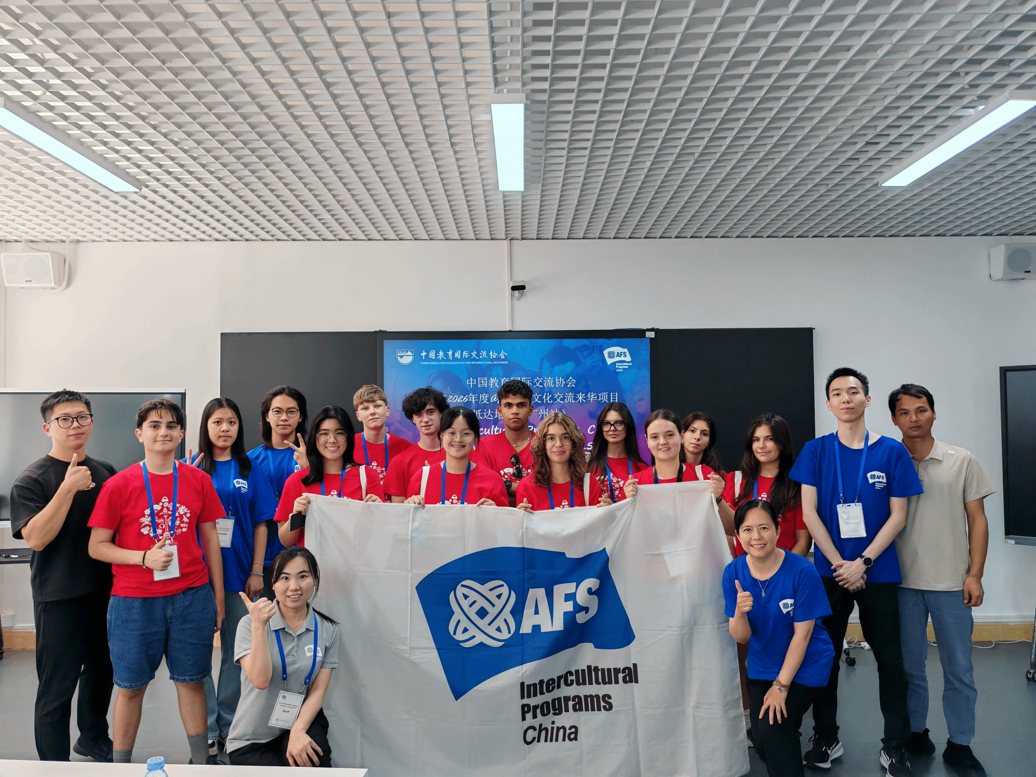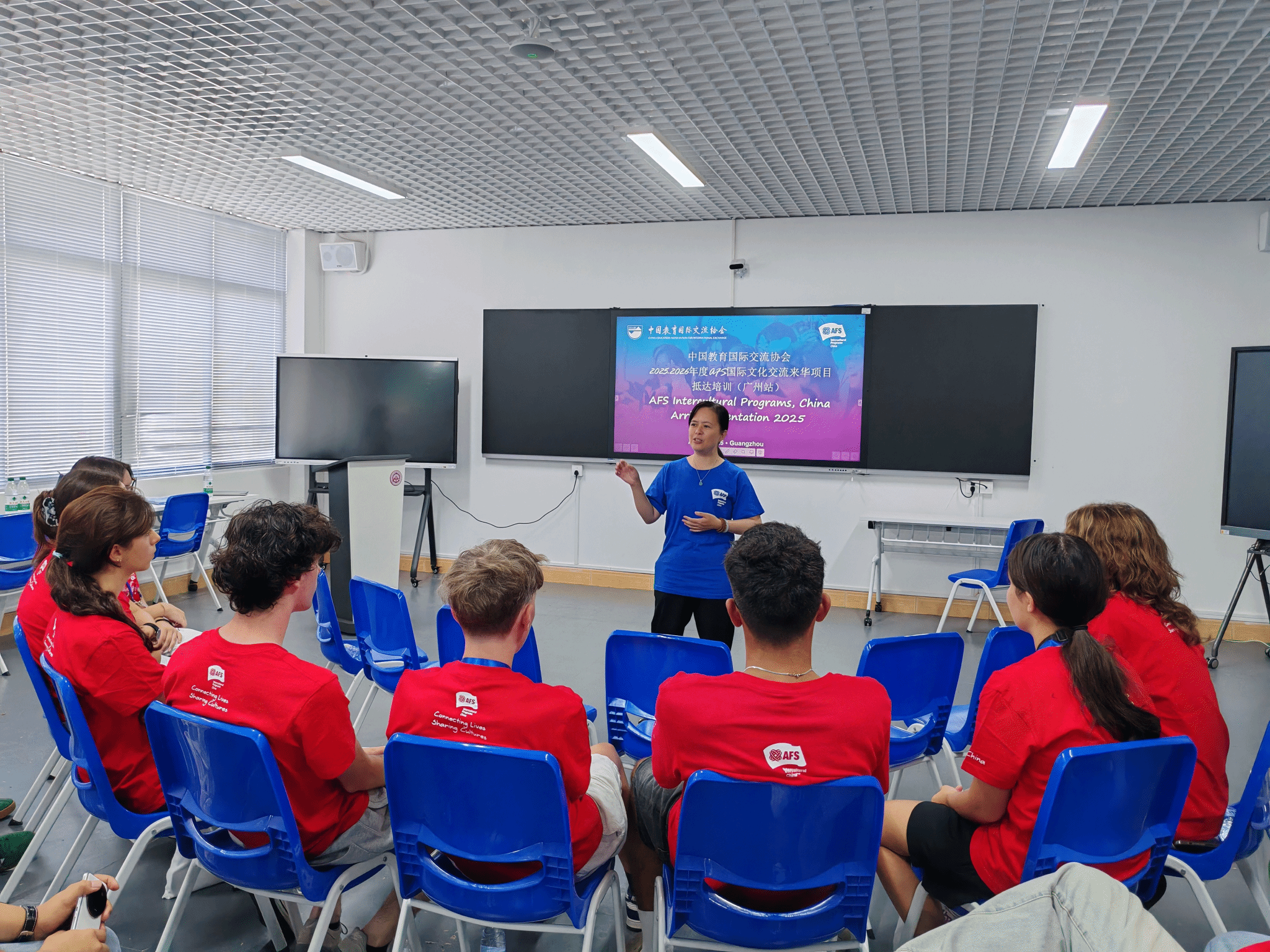 近日,由我院承办的2025-2026年度AFS国际文化交流项目来华学生广州抵达培训在科技校区顺利举行。来自意大利、波兰、法国、泰国等4个国家的11名国际学生齐聚广州,开启了为期三天的在华适应与文化融入培训。中国教育国际交流协会杨梦媛,广东教育国际交流协会谭建飞,我院项目负责人曾生峰、肖大东共同参与活动,为中外青年跨文化交流搭建坚实桥梁。