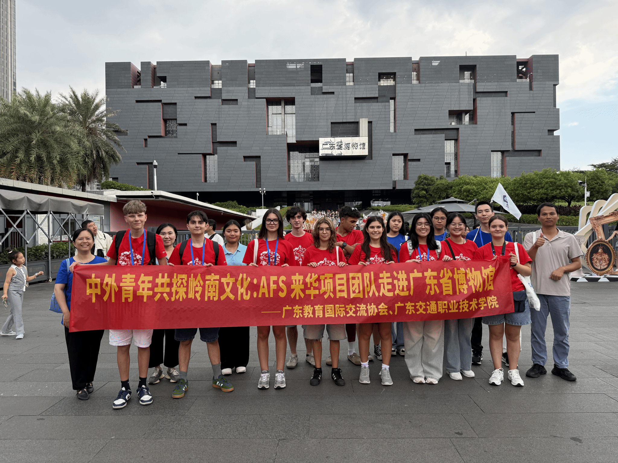 当天下午,培训聚焦“实践准备与文化体验”。中国教育国际交流协会杨梦媛详细解读住宿家庭项目细则与在华生活实用Tips,并通过分组交流的形式,逐一解答学子们疑问,确保每位学生清晰了解项目管理要求。全体学员在志愿者的带领下参观了广东省博物馆、广州塔、花城广场等标志性地点,漫步广州街头,直观感受羊城的城市风貌与岭南文化魅力,活动结束后统一护送学生返回住宿地点,严格落实晚间作息管理,保障学生安全。