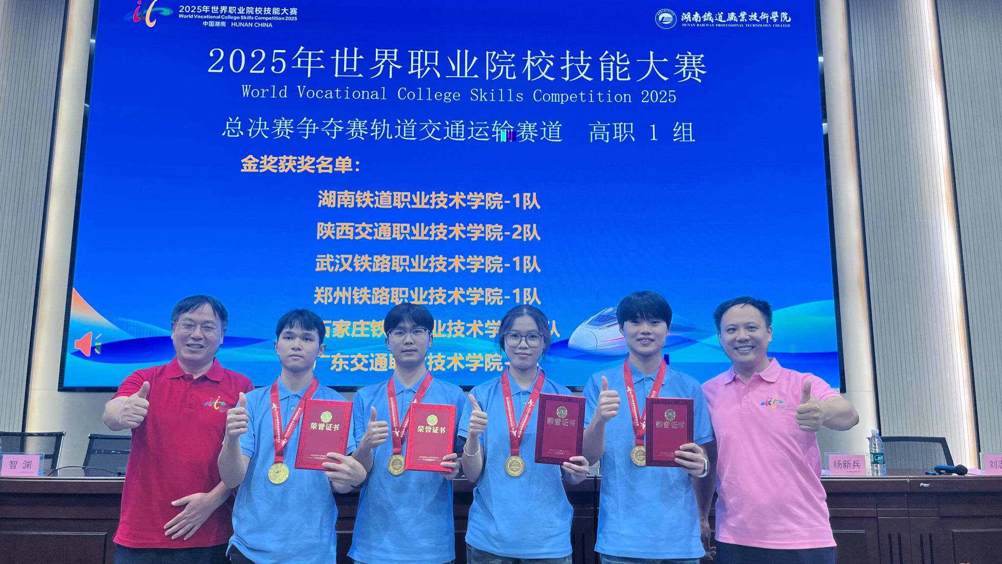 8月28日至31日,2025年世界职业院校技能大赛总决赛争夺赛轨道交通运输赛道(高职组)赛项顺利举行,我院轨道交通学院两支代表队发挥出色,经过激烈角逐,最终斩获金奖一项、银奖一项,实现我院在世界职业院校技能大赛总决赛中金奖零的突破。