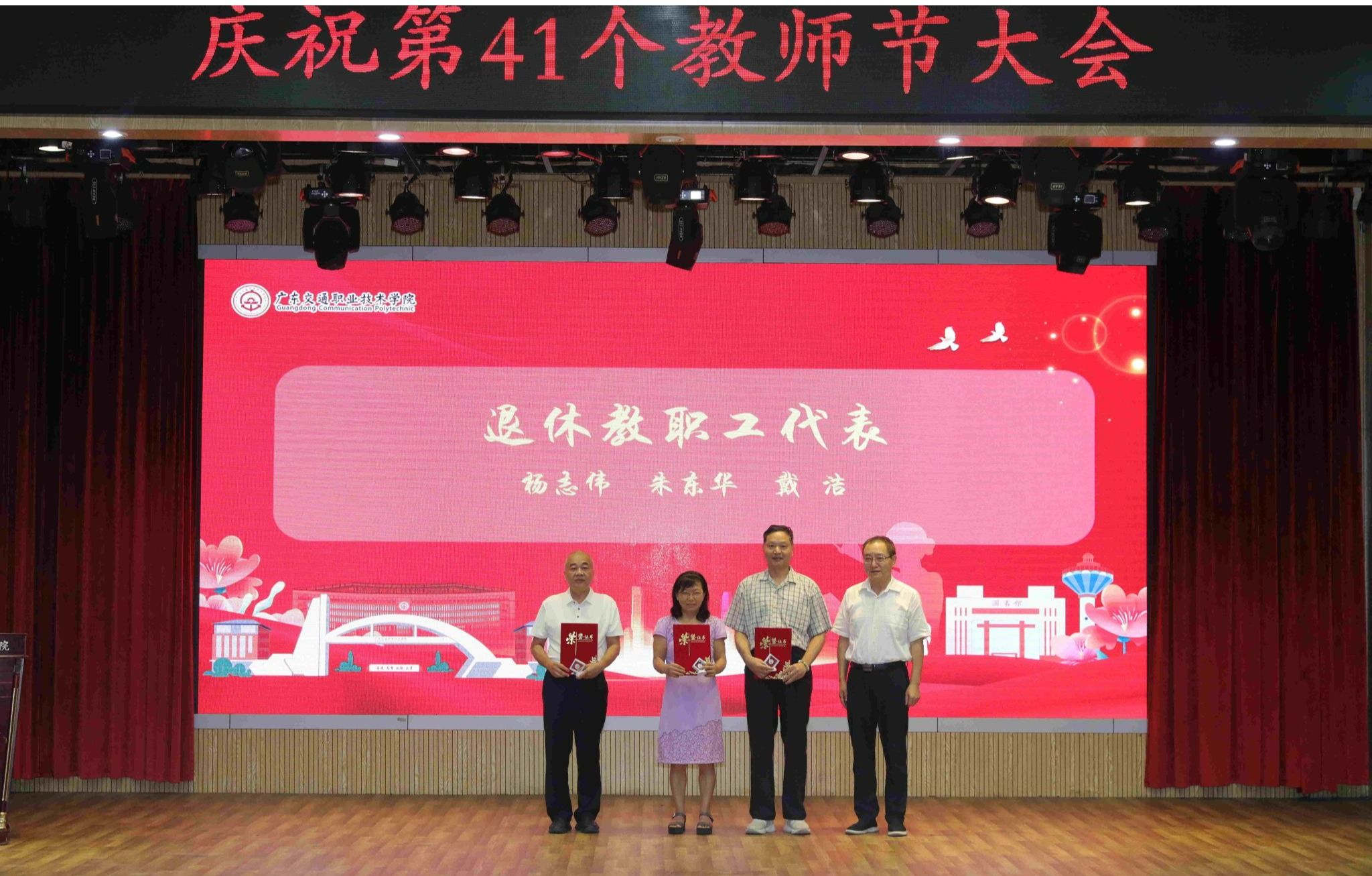 9月10日下午,学院在天河校区设主会场,清远校区、花都校区设立分会场同步举行第41个教师节庆祝表彰大会。本次大会以“以教育家精神铸魂强师,谱写教育强国建设华章”为主题,全体教职工齐聚一堂,共庆节日、表彰先进、展望未来。学院党委副书记、院长罗毅,党委副书记、纪委书记蔡艺,党委副书记廖金宝,副院长王劲松、邱文祥出席大会,大会由王劲松主持。
