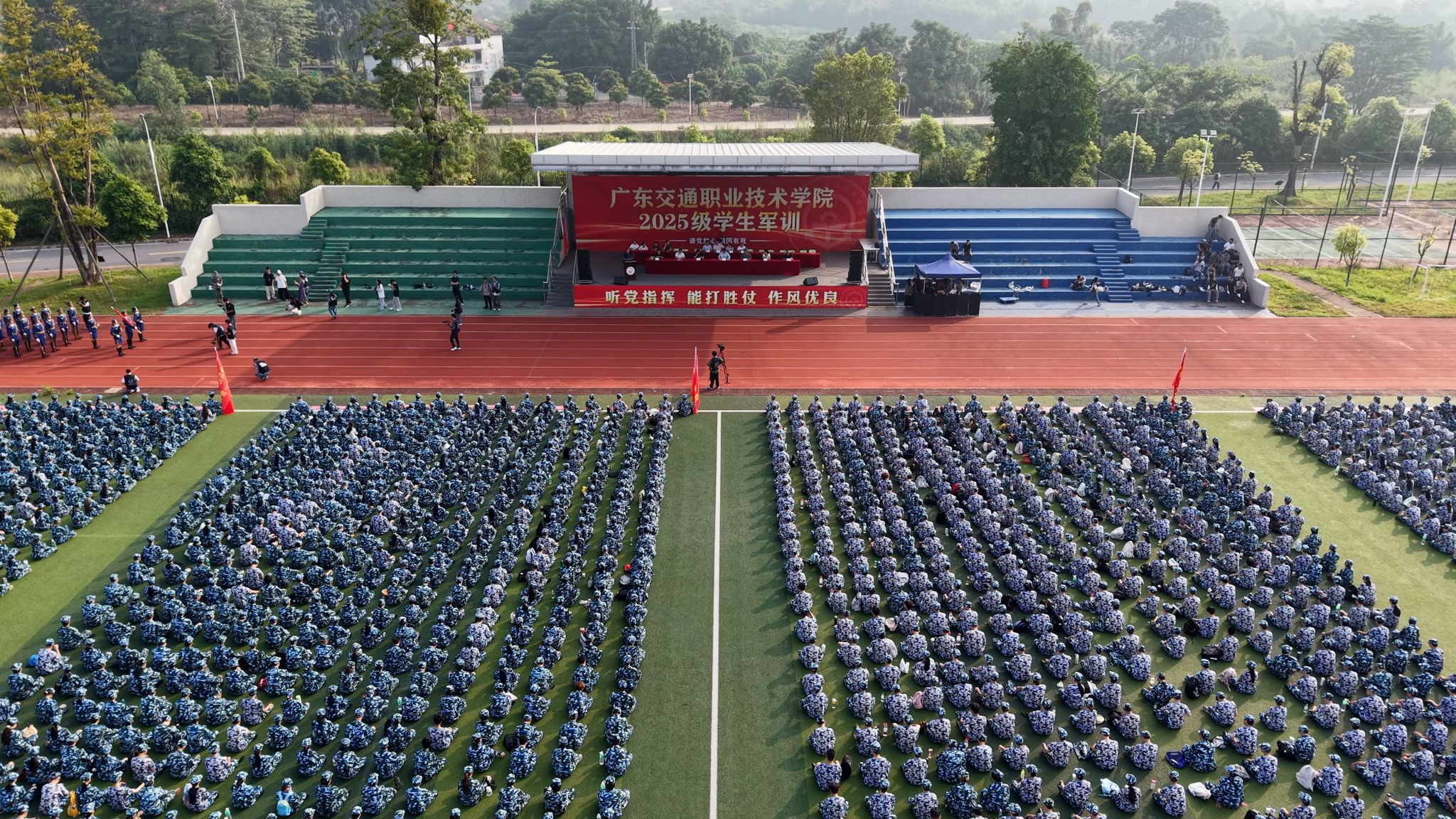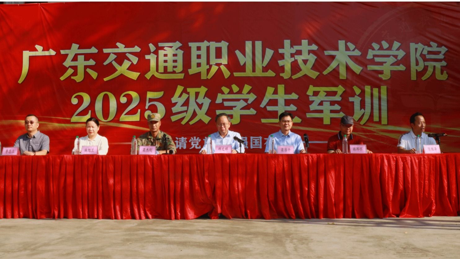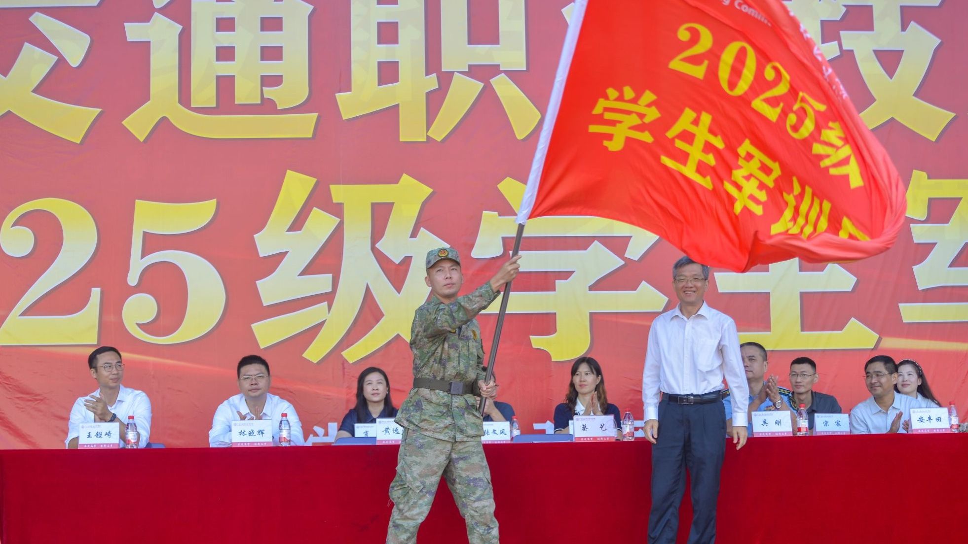 会上,主持人宣读了《关于成立广东交通职业技术学院2025级学生军训团、营的决定》。学院领导为军训团授予团旗。在领誓人的带领下,全体新生进行了庄严宣誓,表达了听从指挥、刻苦训练、为校争光的坚定决心。