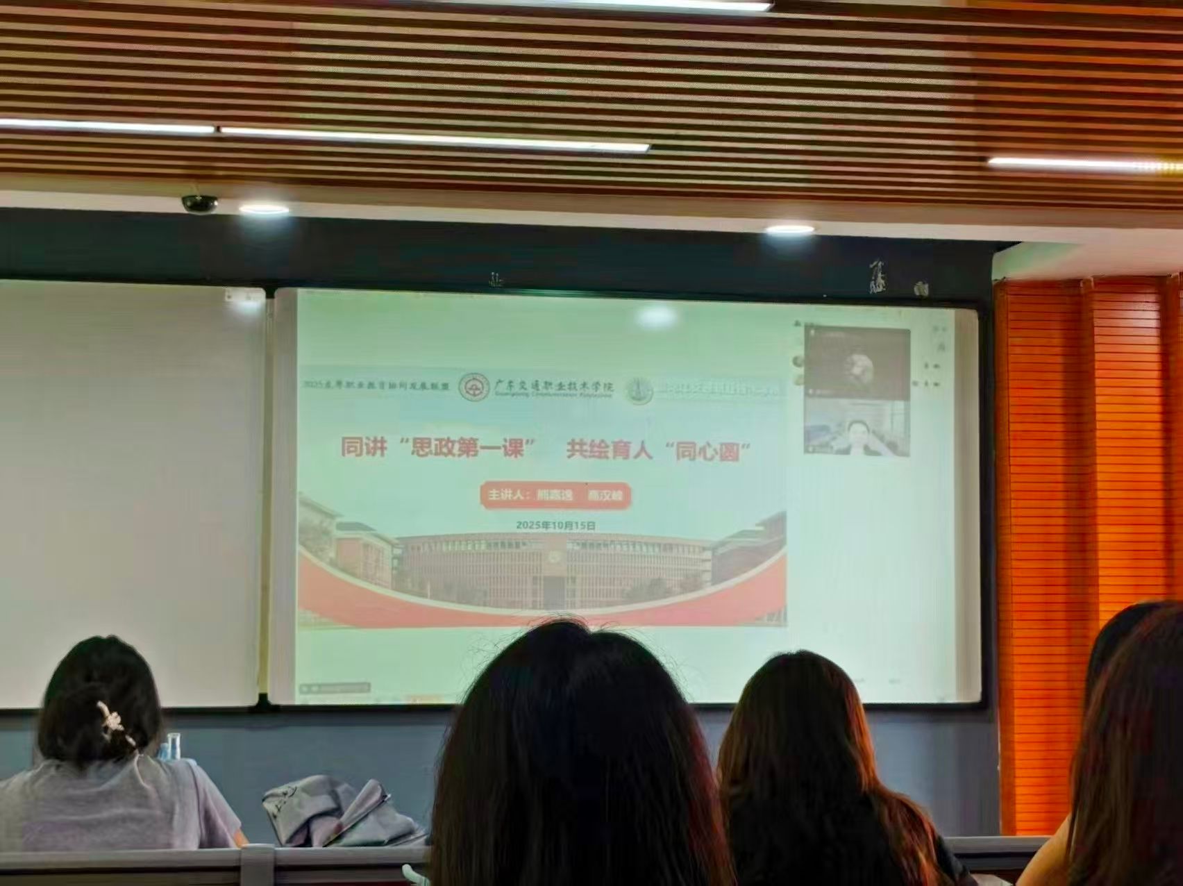 10月15日上午,学院副院长熊嘉逸、黑龙江交通职业技术学院党委副书记高汉峰通过线上课堂,为2024级城市轨道交通运营管理5班和6班的同学讲授了本学期“思政第一课”。两位校领导共同围绕纪念中国人民抗日战争暨世界反法西斯战争胜利80周年主题,立足两地文化两校特色共话精神传承、交通文化、育人实践,为同学们带来了内涵丰富、案例生动、形式新颖的一堂思政课。