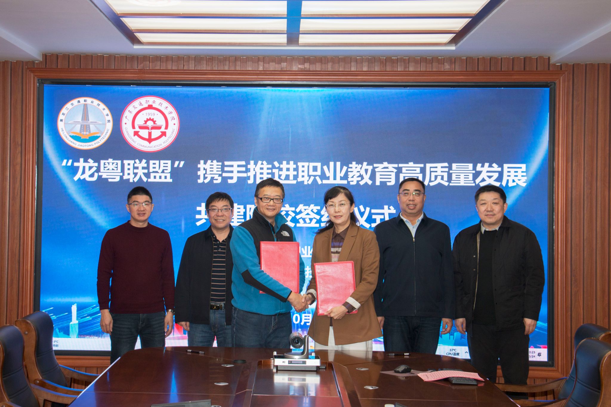 签约仪式上,王劲松介绍了我院在专业动态调整、“五金”建设、产教融合等方面的实践经验,并指出,黑龙江交通职业技术学院在东北地区交通人才培养方面特色鲜明,此次合作有助于实现南北职教优势互补,共同打造“龙粤联盟”的示范样本。高汉峰介绍了黑龙江交职院的办学特色,表示将以此次合作为契机,进一步深化两校办学经验交流,拓展合作层次。