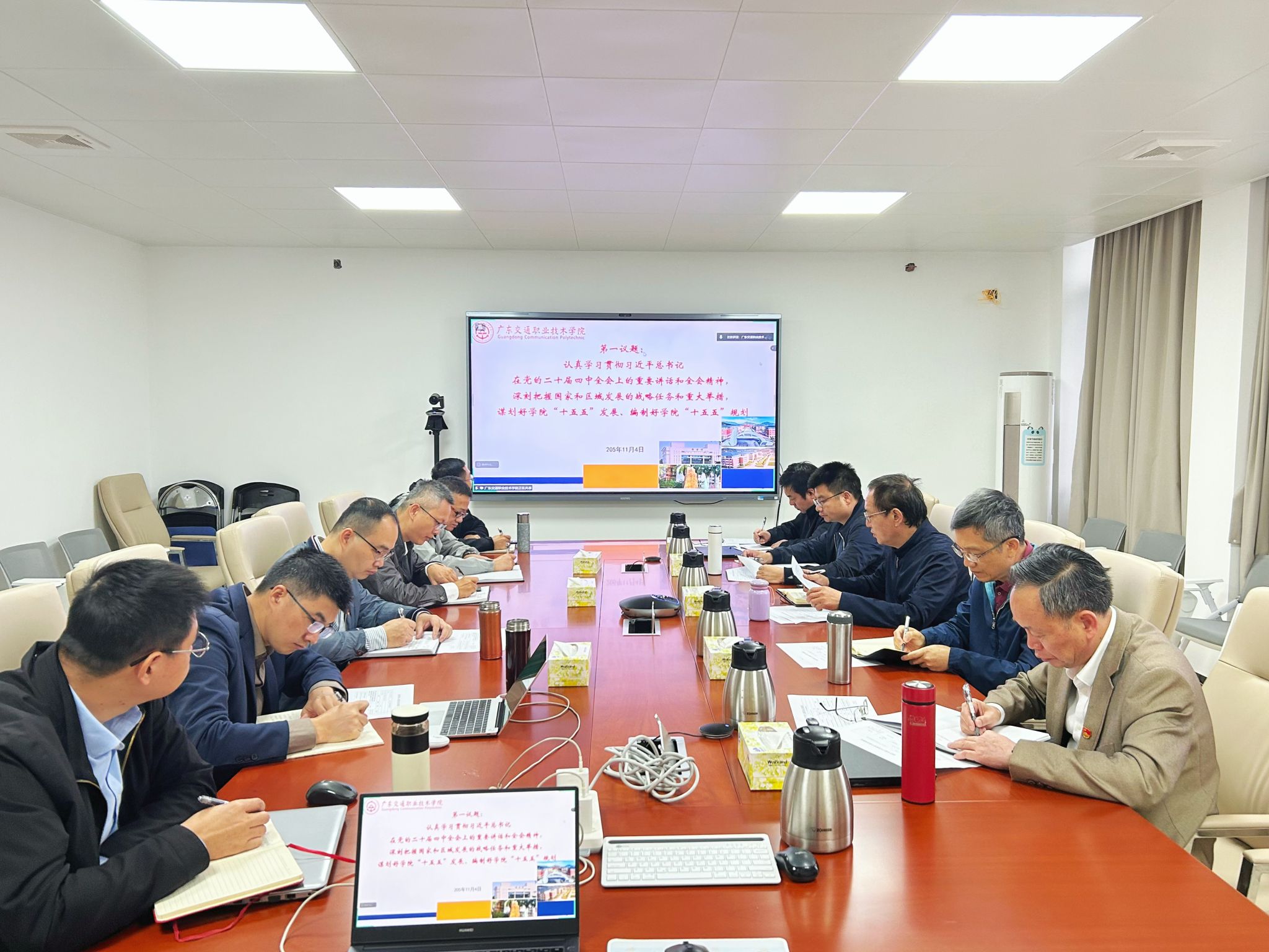 11月4日,学院党委专题学习习近平总书记在党的二十届四中全会上的重要讲话和全会精神,深刻把握国家和区域发展的战略任务和重大举措。学院党委副书记、院长罗毅主持会议并提出贯彻落实意见,全体党委班子成员出席会议。