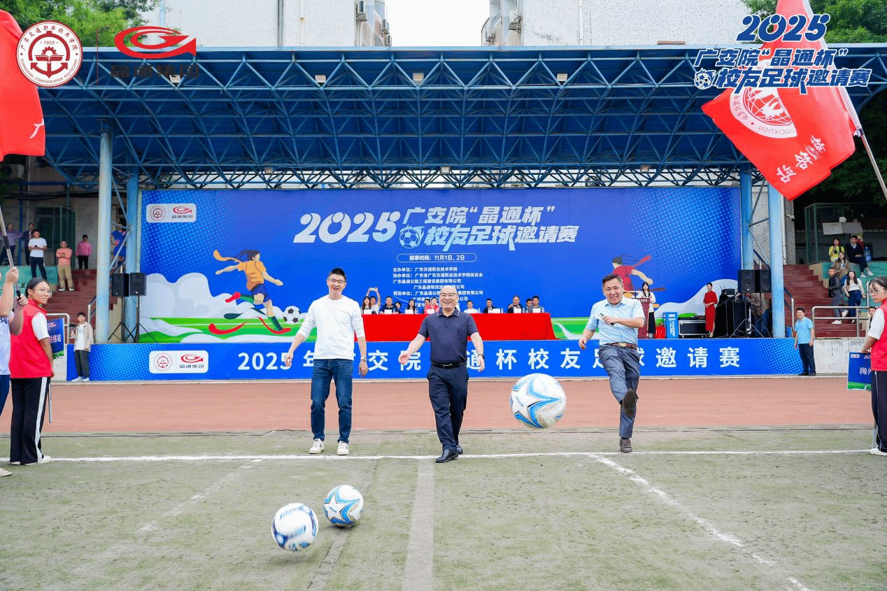 随后,邱文祥宣布2025年广交院“晶通杯”校友足球邀请赛开幕。党政办公室(校友工作办公室)主任余国兴、科技产教园区管委会主任罗宇飞、晶通公司副总经理邢国彬共同为比赛开球。