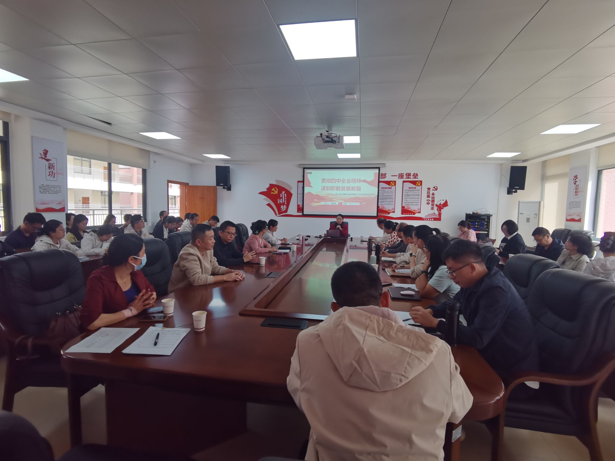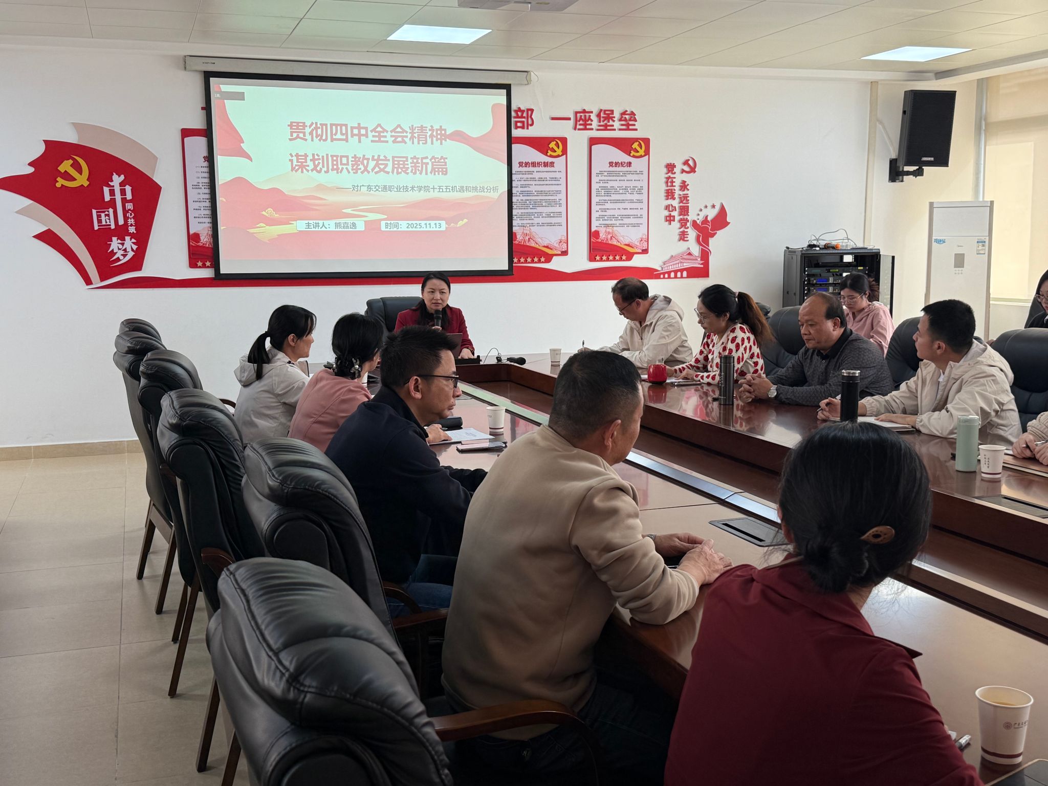 11月13日,学院党委委员、副院长熊嘉逸赴运输与经济管理学院宣讲党的二十届四中全会精神,以《贯彻四中全会精神,谋划职教发展新篇》为主题,为运输与经济管理学院全体老师讲授思政课。