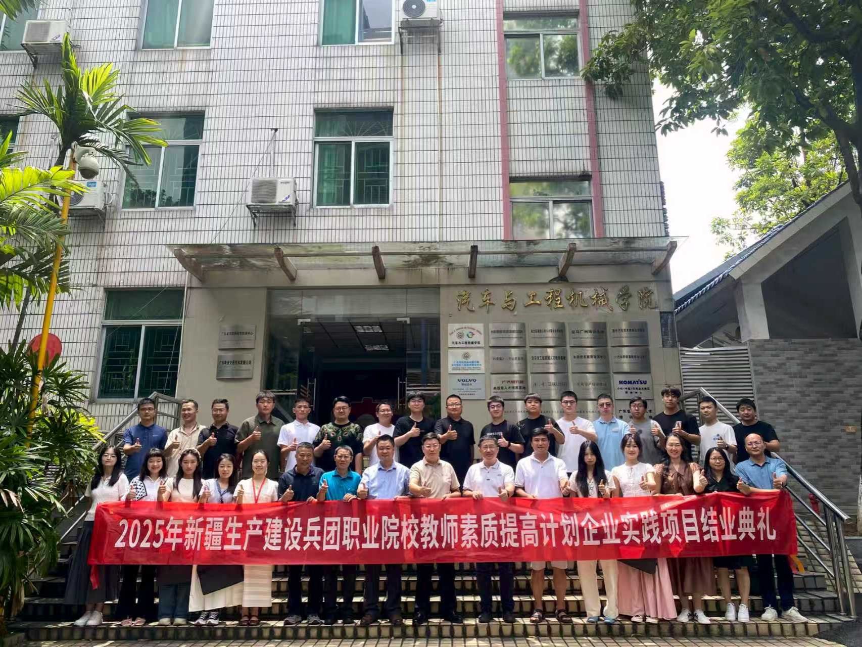 8 月 25 日,2025 年新疆生产建设兵团职业院校教师素质提高计划企业实践项目国培班结业典礼在广东交通职业技术学院汽车与工程机械学院顺利举行。此次培训历时26天,采用“理论授课—企业访学—顶岗实践”培训模式,为参训教师们提供了对接产业科技前沿、提升实践教学能力的高质量培训内容,圆满完成了培训任务。
